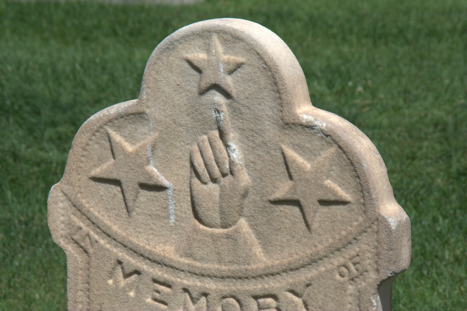 Fingers – Here’s another strange object to put on a gravestone, but people did. If the finger is pointing upward, it’s pointing to Heaven, if it’s pointing downward, it represents God reaching down to Earth to pull the soul to Him; also, a sudden death.