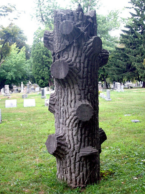 Tree – If you see a tree stump, that represents a life interrupted. If the stump has ivy growing around it, that represents the head of a family as well as immortality.